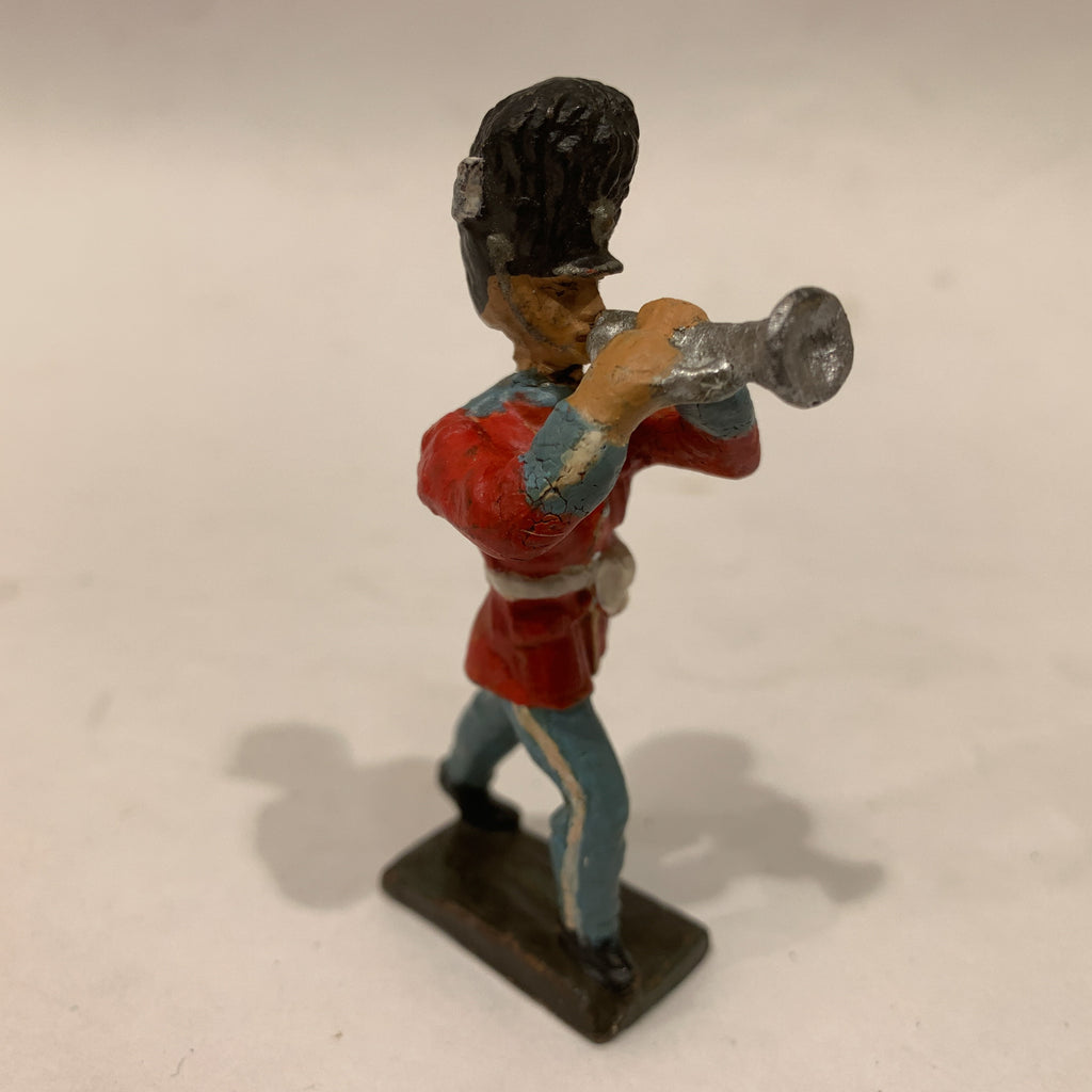 Lineol Kongelig Livgarder musiker, trompet. Fra 1930/1940érne. Mål: ca. H:8,5cm. (model foto) Flere haves. Figurene er håndmalet og variere i farve og udtryk, standen variere også. Stand: Brugsspor, krakeleringer mm. Restaureringer kan forekomme.