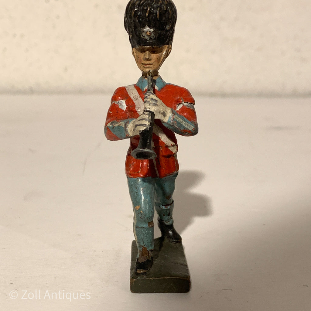 Lineol Kongelig Livgarder musiker, klarinet. Fra 1930/1940érne. Mål: ca. H:8,5cm. (model foto) Flere haves. Figurene er håndmalet og variere i farve og udtryk, standen variere også. Stand: Brugsspor, krakeleringer mm. Restaureringer kan forekomme.