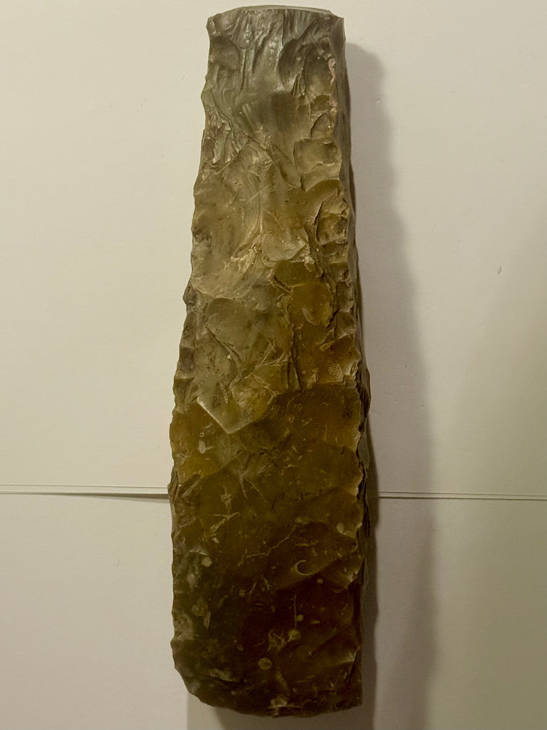 Danish antique. Thick-cracked Lindø axe in flint. Late Jættestuet period.