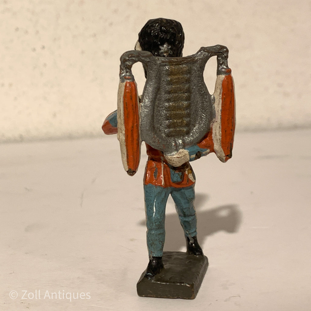 Lineol Royal Lifeguard musician, with Lyre. From the 1930s/1940s. Dimensions: approx. H: 8.5cm. (model photo) Several are available. The figures are hand-painted and vary in color and expression, the condition also varies. Condition: Signs of wear, cracks, etc. Restorations may occur.