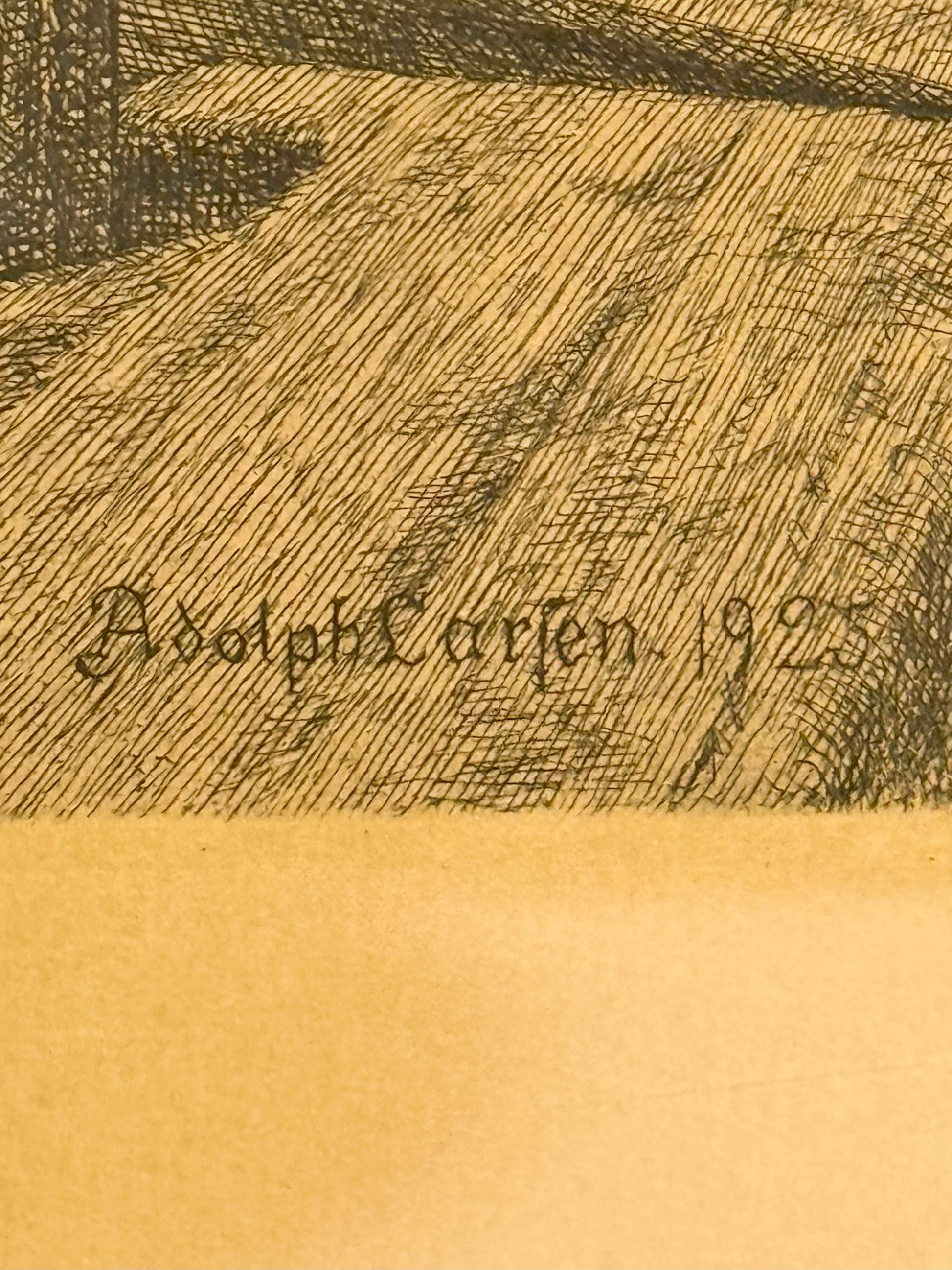 Lithograph by Adolf Larsen (b. 1856-1942) from Frederiksholms Canal, Copenhagen, 1925. Signed and dated in the print. Framed in a gold-plated wooden frame. Dimensions: frame: approximately 43x45 cm. Print: 24x26 cm. Condition: see images.