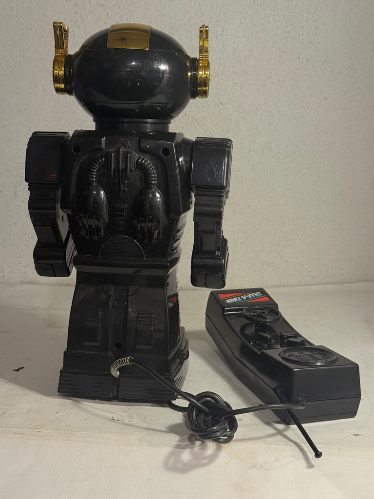 Vintage Playwell Talk-A-Tron remote controlled Robot, from the 1980s. Dimensions: approx. 35x24x24 cm. Condition: The robot's electrical functionality has not been tested, otherwise see pictures.