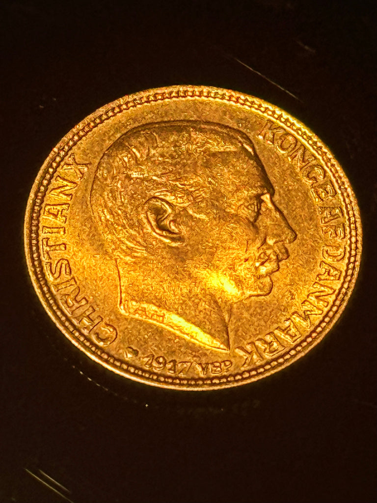 10 kr. Dansk Christian X. 21,6 karat Guldmønt, fra 1917.