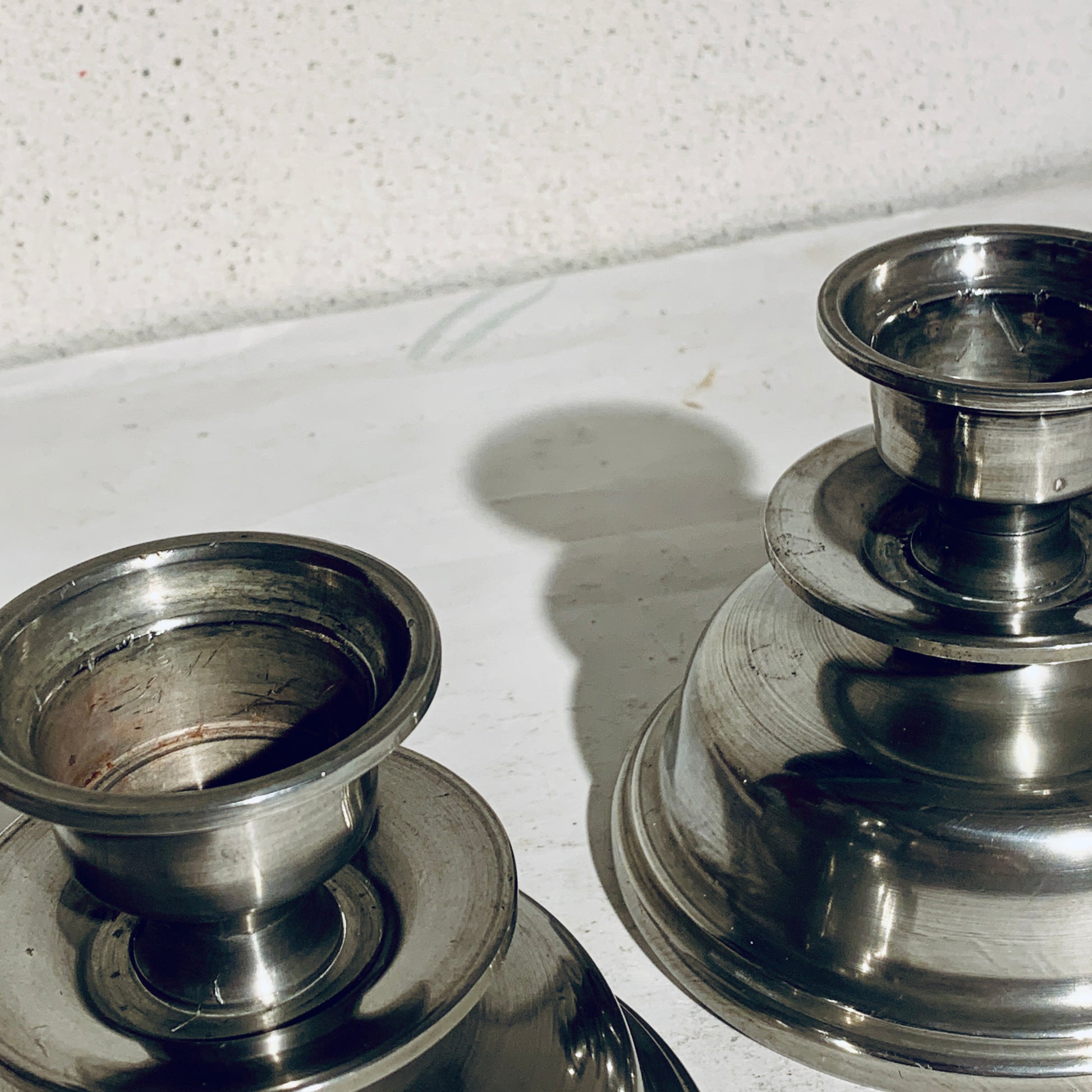 Ældre tin lysestager, fra start/midt 1900 tallet.