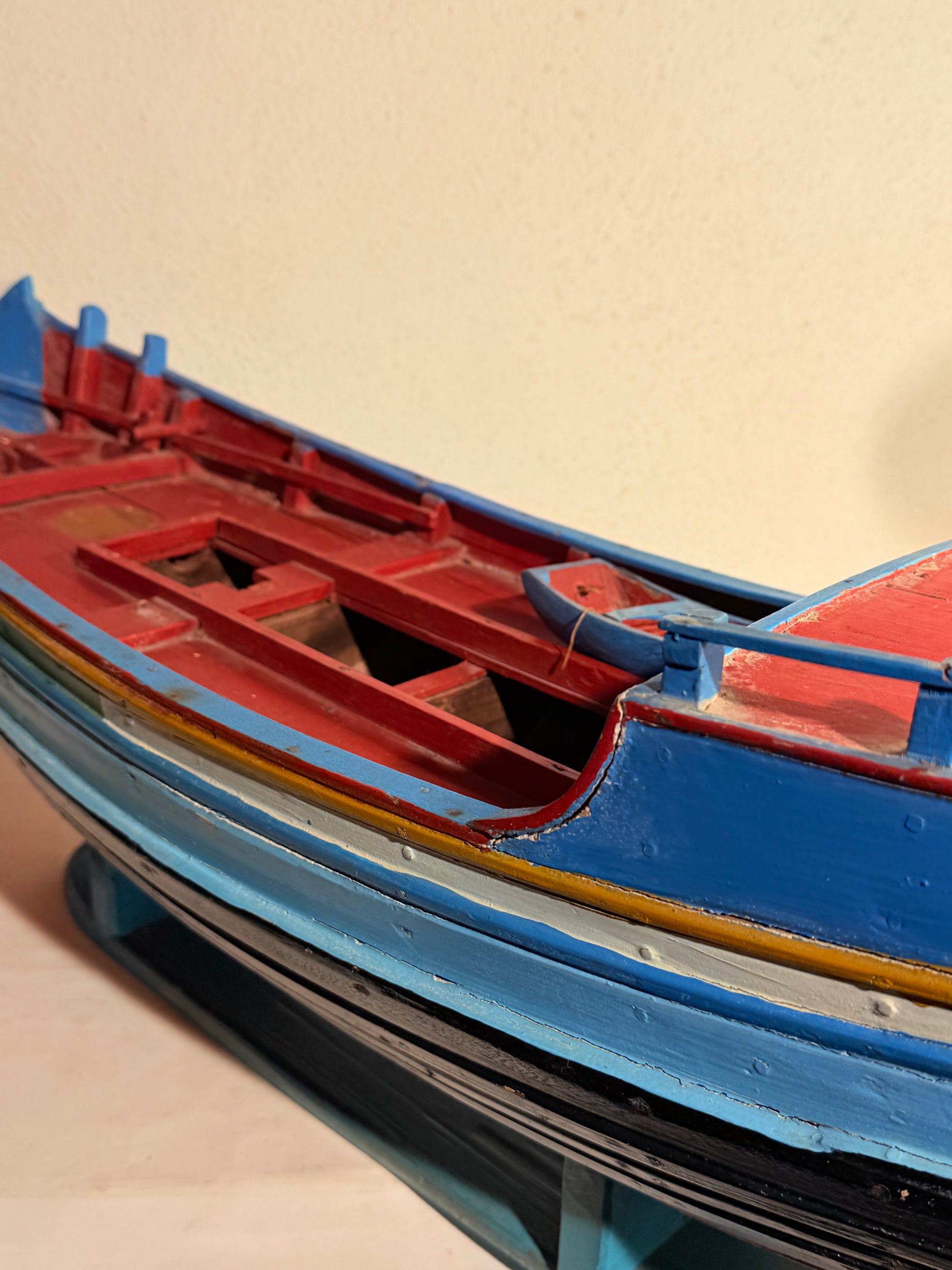 Antik håndbygget Modelskib af Kinesisk Junke (zōng.) i træ, Vurderet til at være fra slut 1800/ start 1900 tallet. Mål: 27x84x23 cm. Stand: se billeder. OBS! FRI FORSENDELSE IKKE INKLUDERET I PRISEN, KONTAKT ZOLL ANTIQUES OG AFTAL FRAGT.