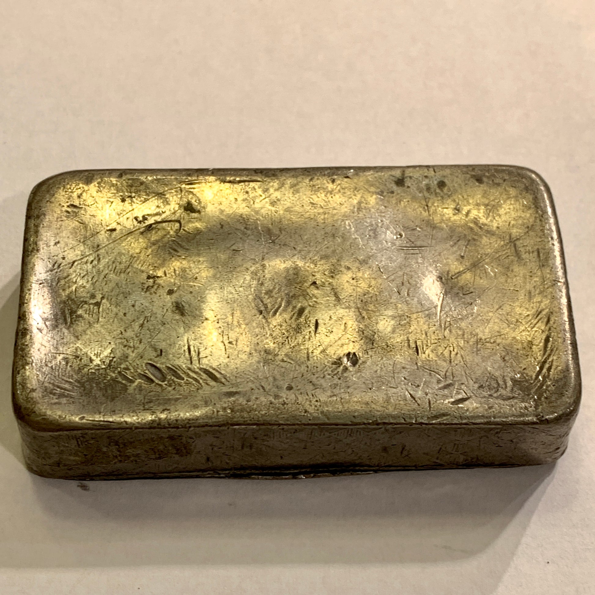 Antik kong Frederik d.6(1808-1839) metal æske, fra start 1800 tallet. Et gammelt sjældent royalt samlerobjekt. Æsken er i tin og har højt sandsynligt været benyttet til snus. Mål: ca. 1,5x7,5x4,3 cm. Stand: se billeder.