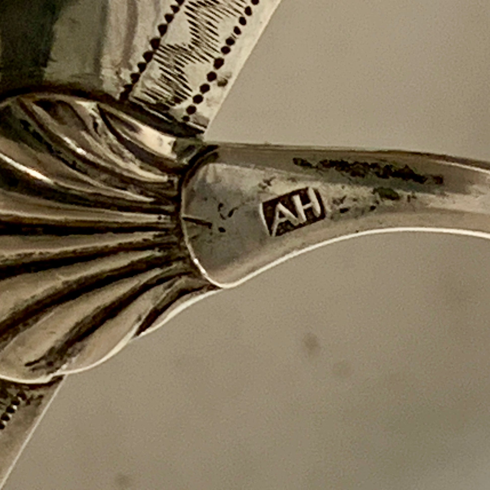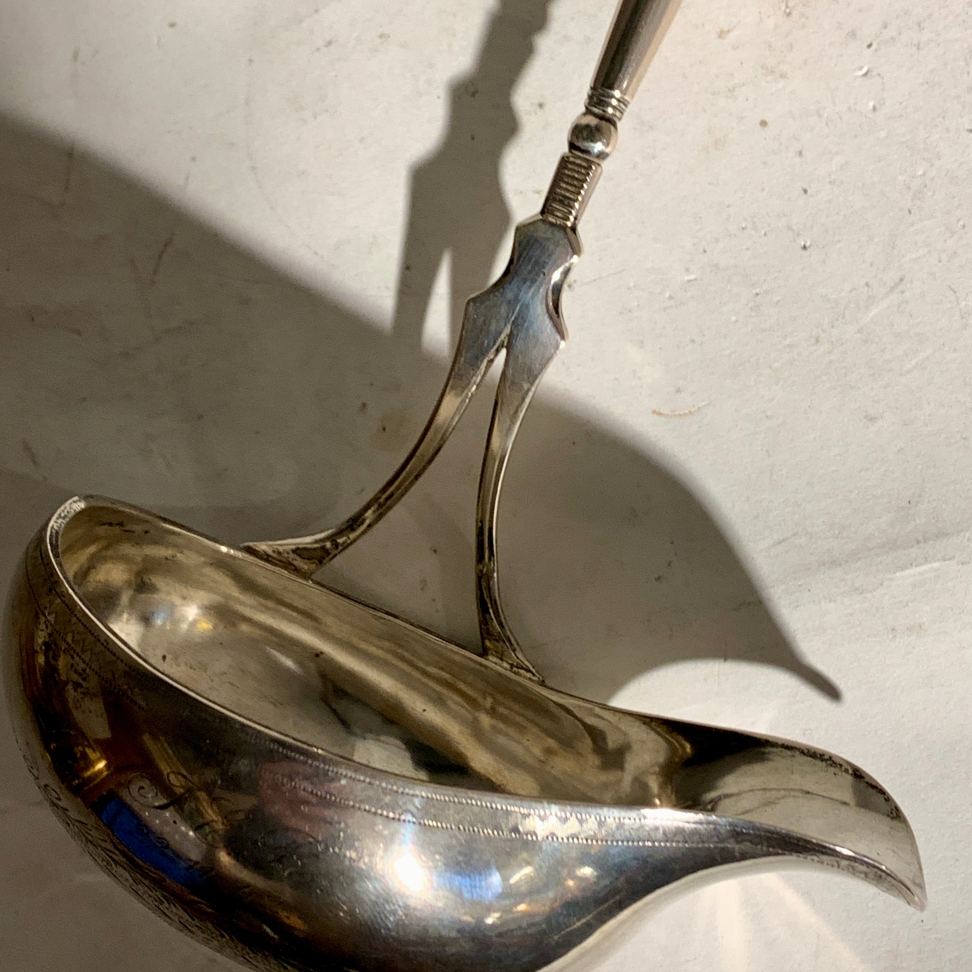 Antik lang sølv punch ske, fra 1842. Stemplet: AH. Graveret J.E.R 13-11-42. Mål: ca. 41x11 cm. Skeen er syretestet. Stand: se billeder.