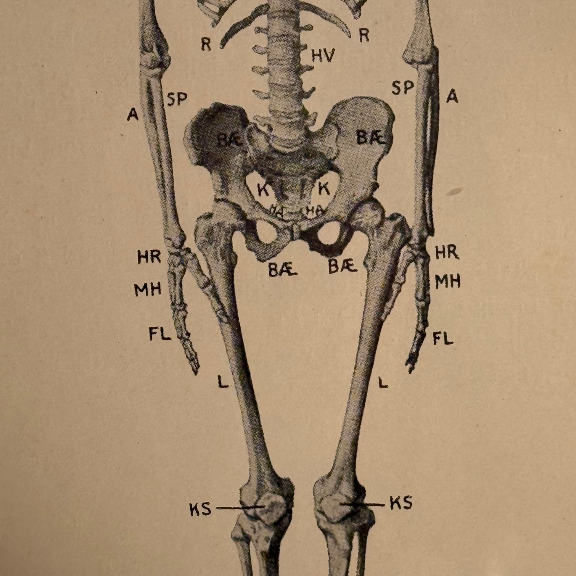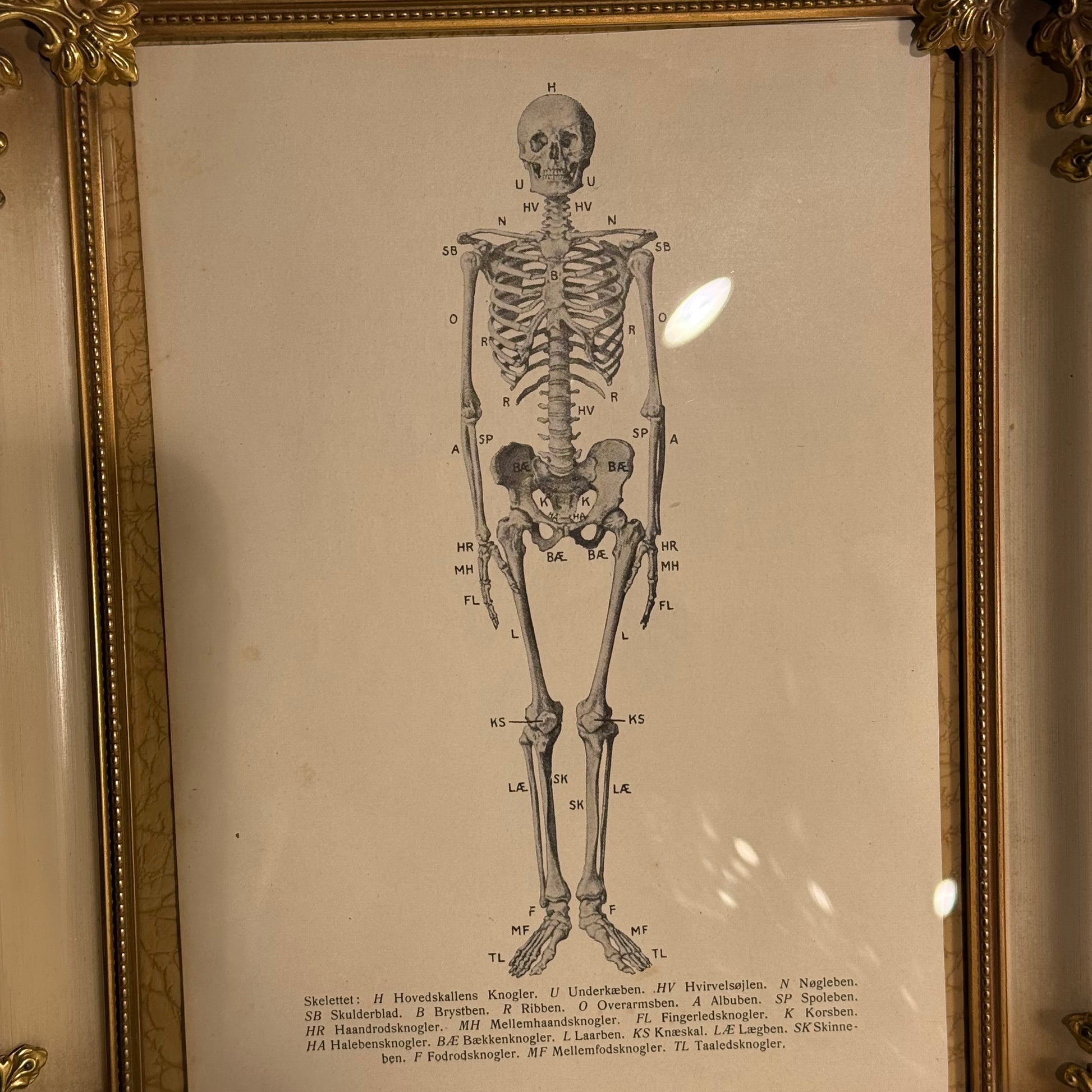 Antik original Skelet oversigt, fra start 1900 tallet.