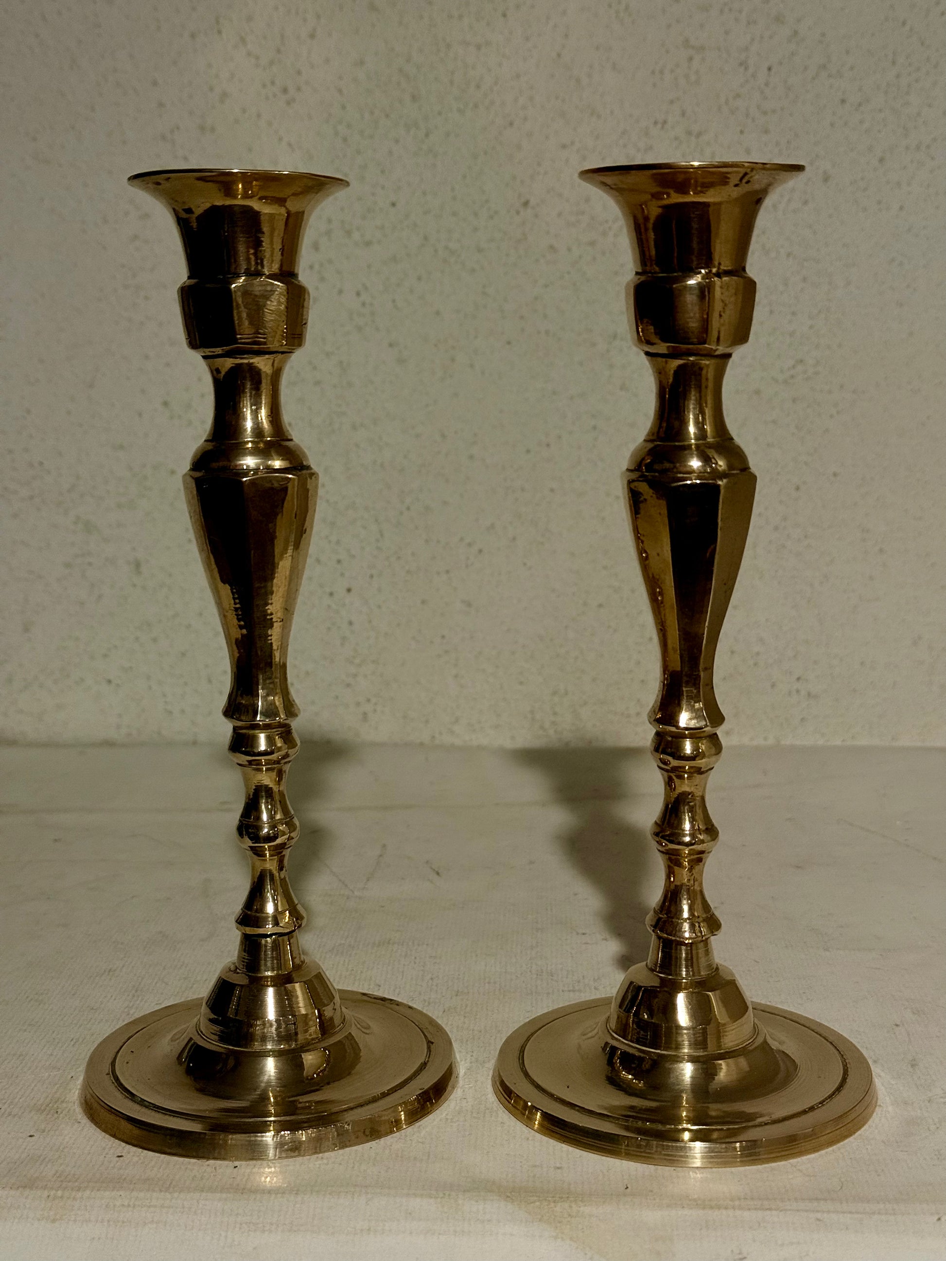 Antikke danske messing lysestager. Fra 1800 tallet.