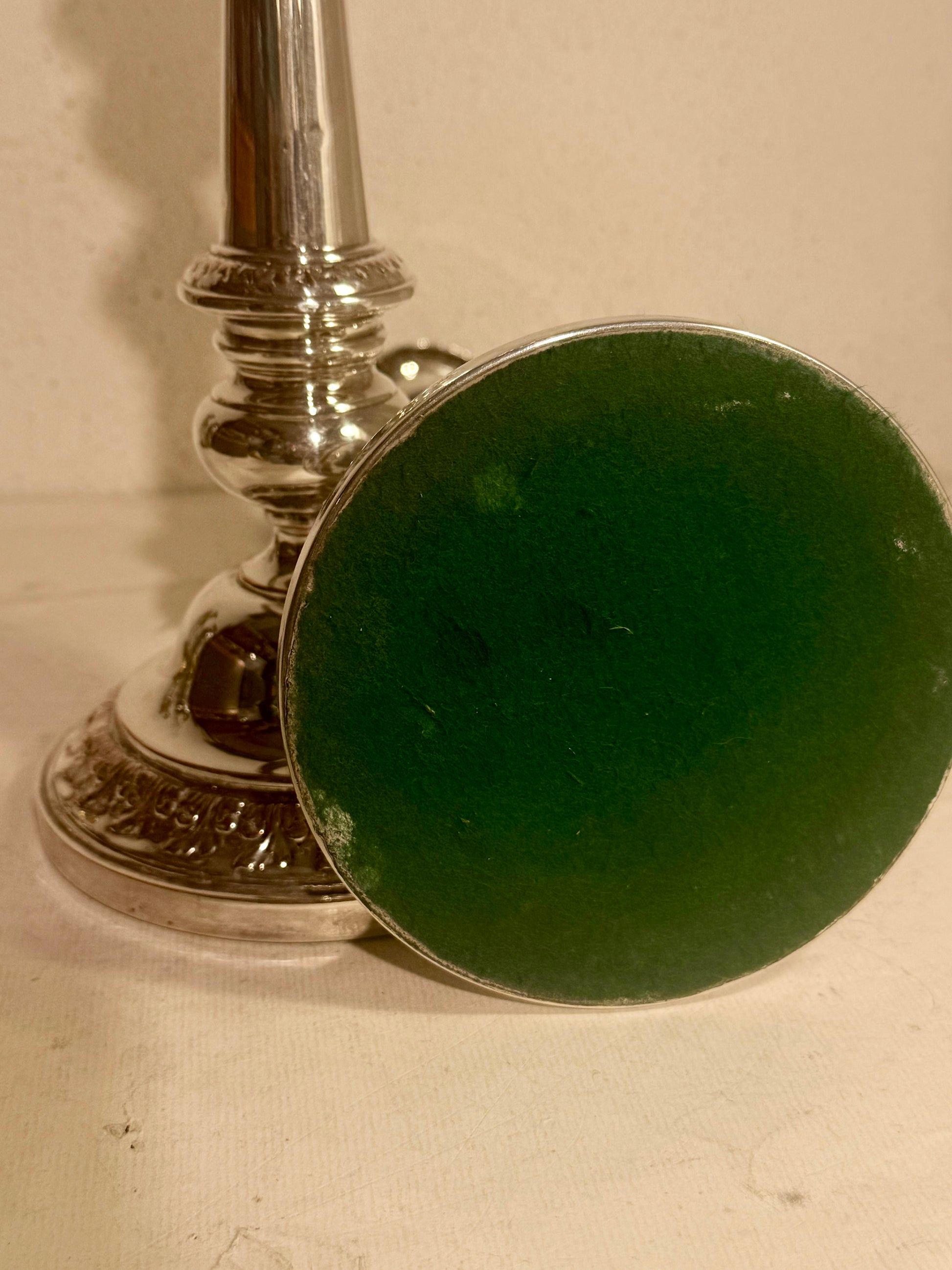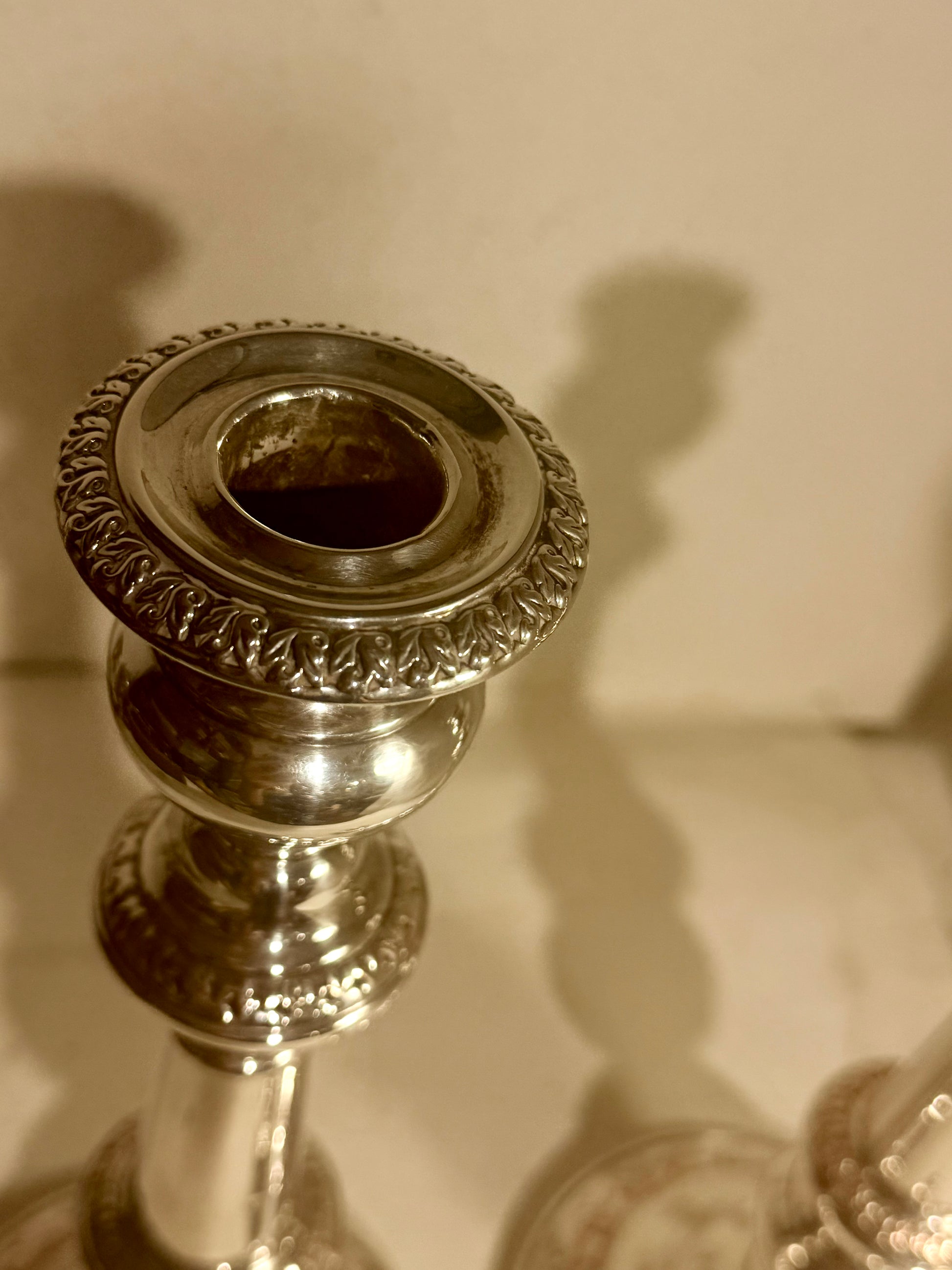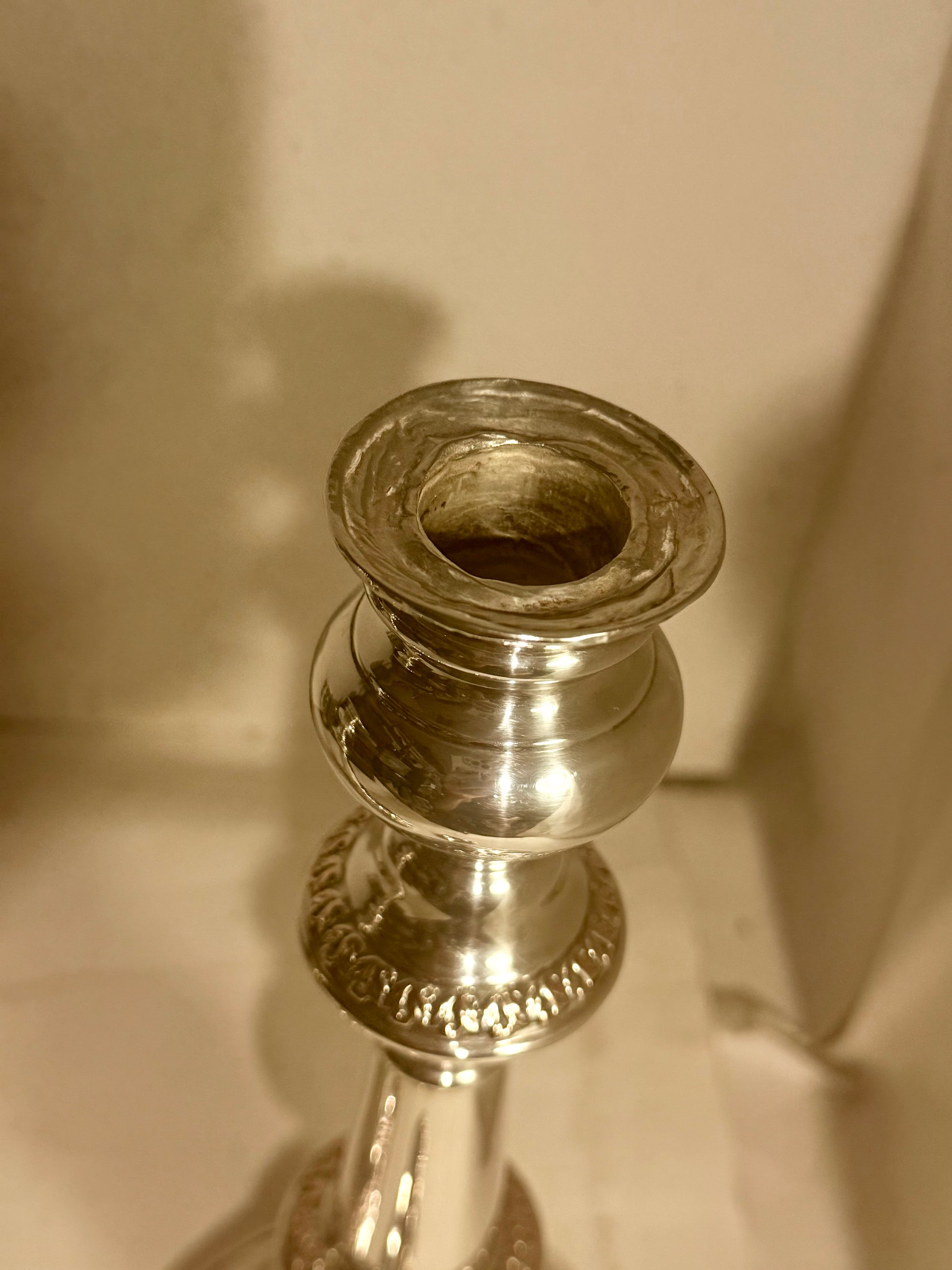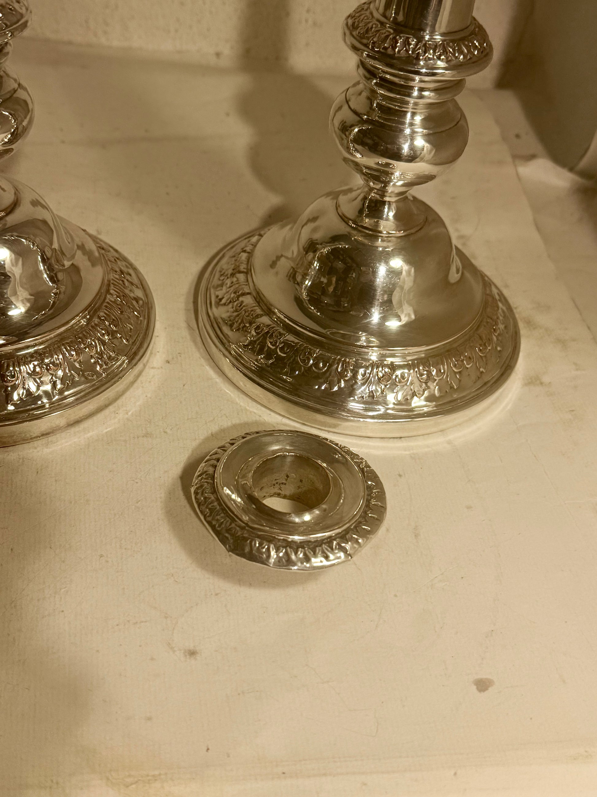 Antikke lysestager fra midt 19.Årh. I sølvbelagt kobber.