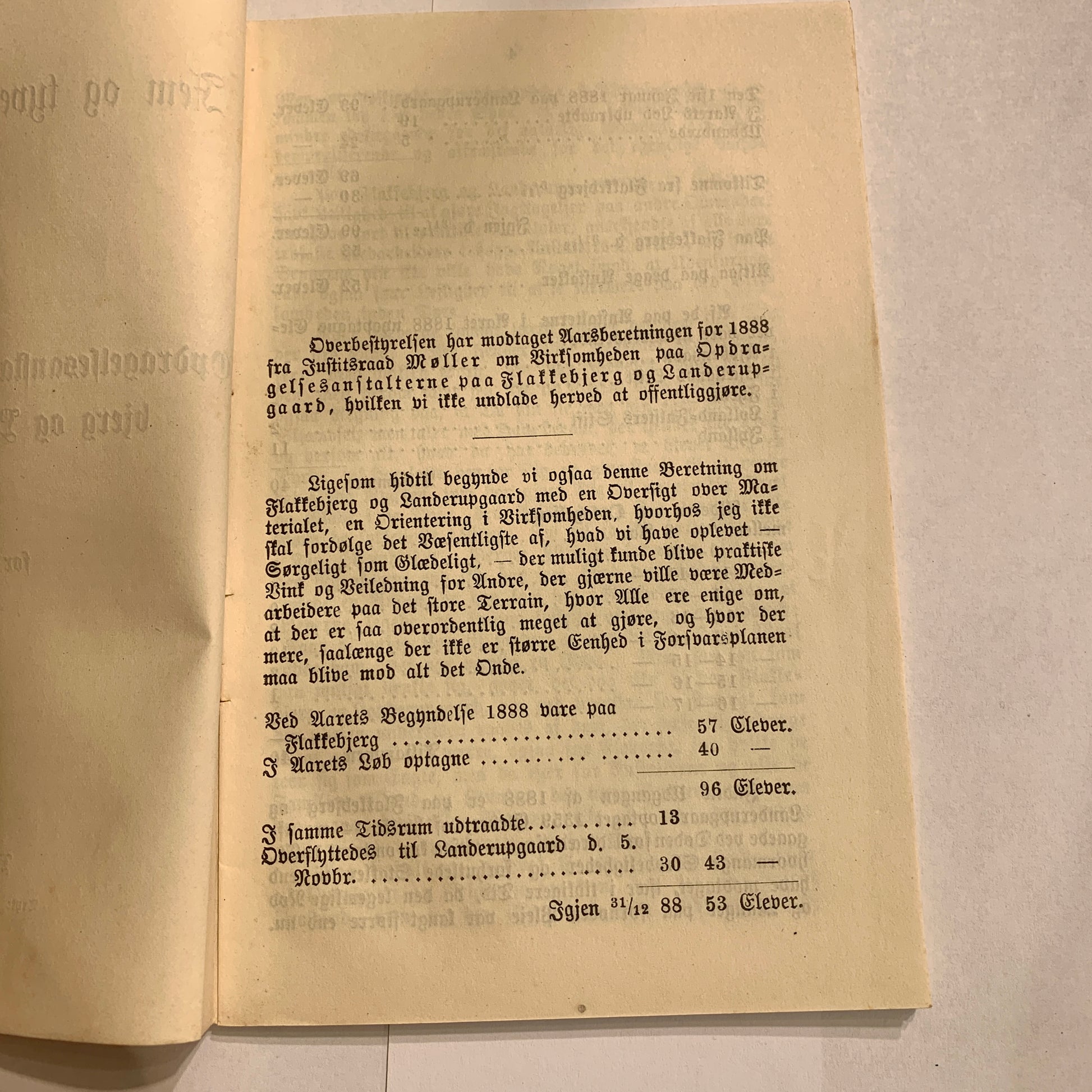 Beretningshæfte om Opdragelsesanstalterne paa Flakkebjerg og Landerupgaard for 1888.