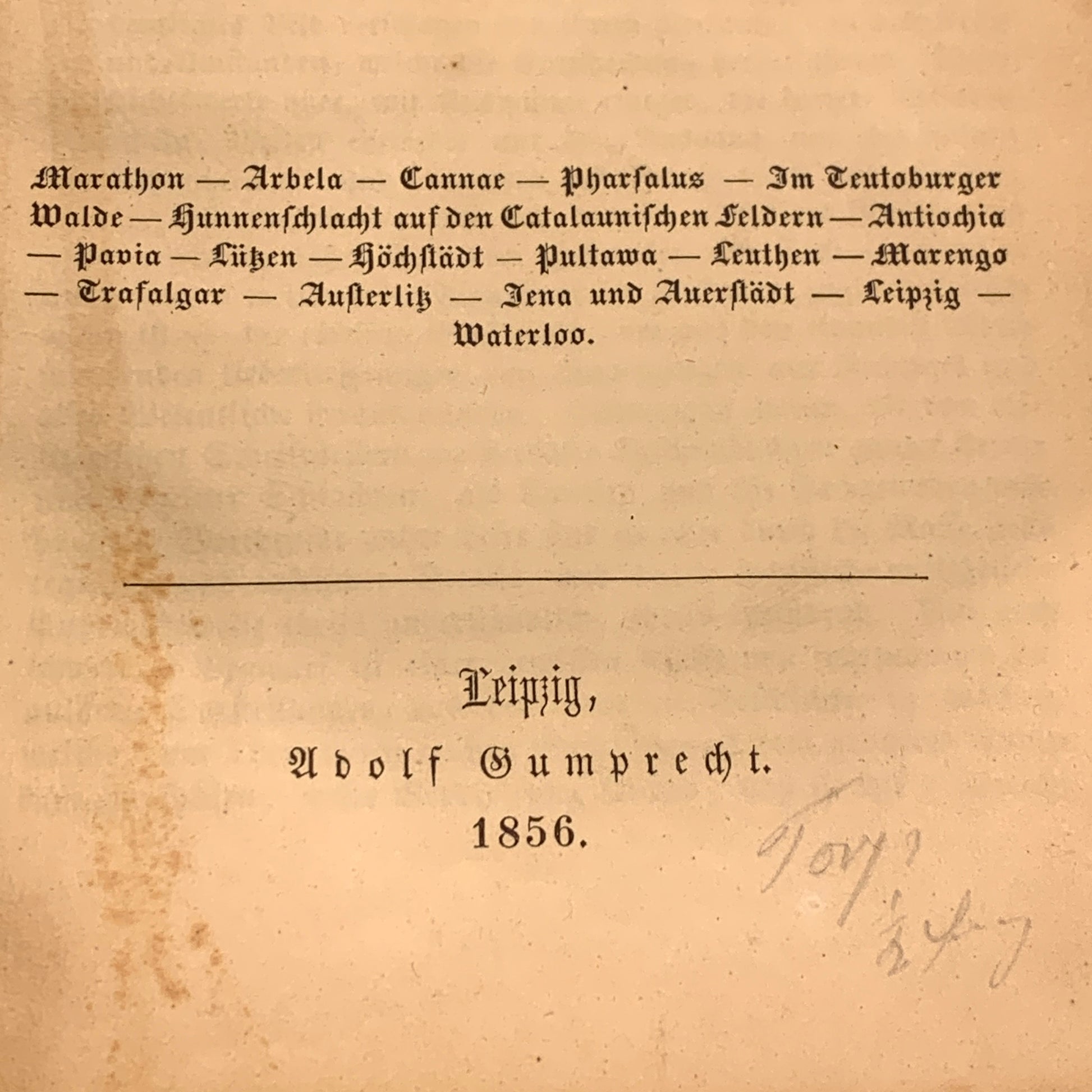 Carl Gustav von Berneck, Das Buch der Schlachten, 1. Udgave, fra 1856. Antikvarisk tysk bog.