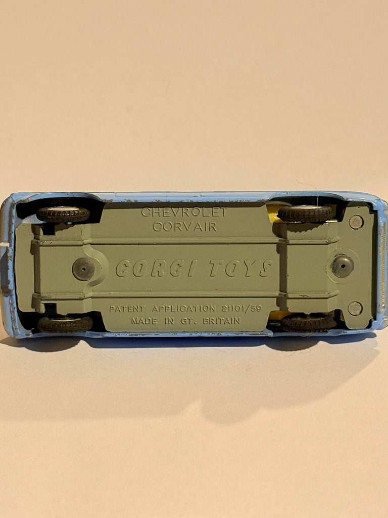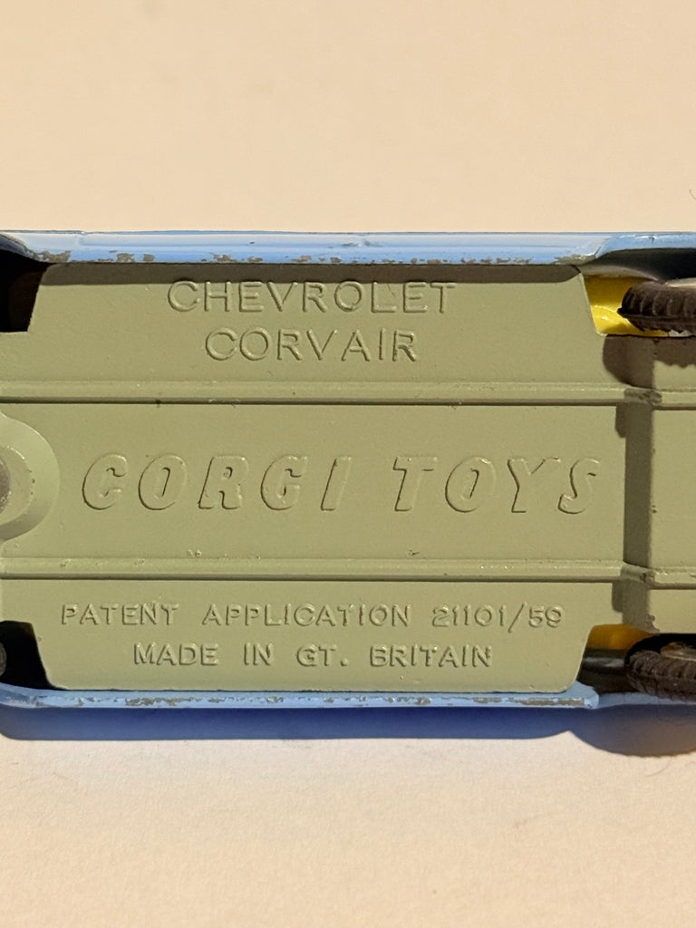 Corgi Chevrolet corvair diecast legetøjsbil. Mål: ca. 2,5x10x3,5 cm. Stand: se billeder.