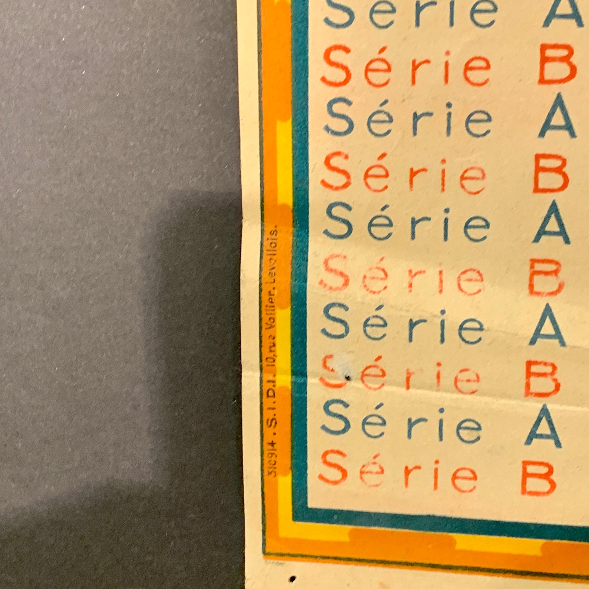 Original fransk “Loterie Nationale” lithografisk plakat,fra 1943. Tegnet af M.Simon.Mål: ca. 50x22 cm. Stand:Restaurationer iform af revnesikring m.m. På bagside, ellers se billeder.