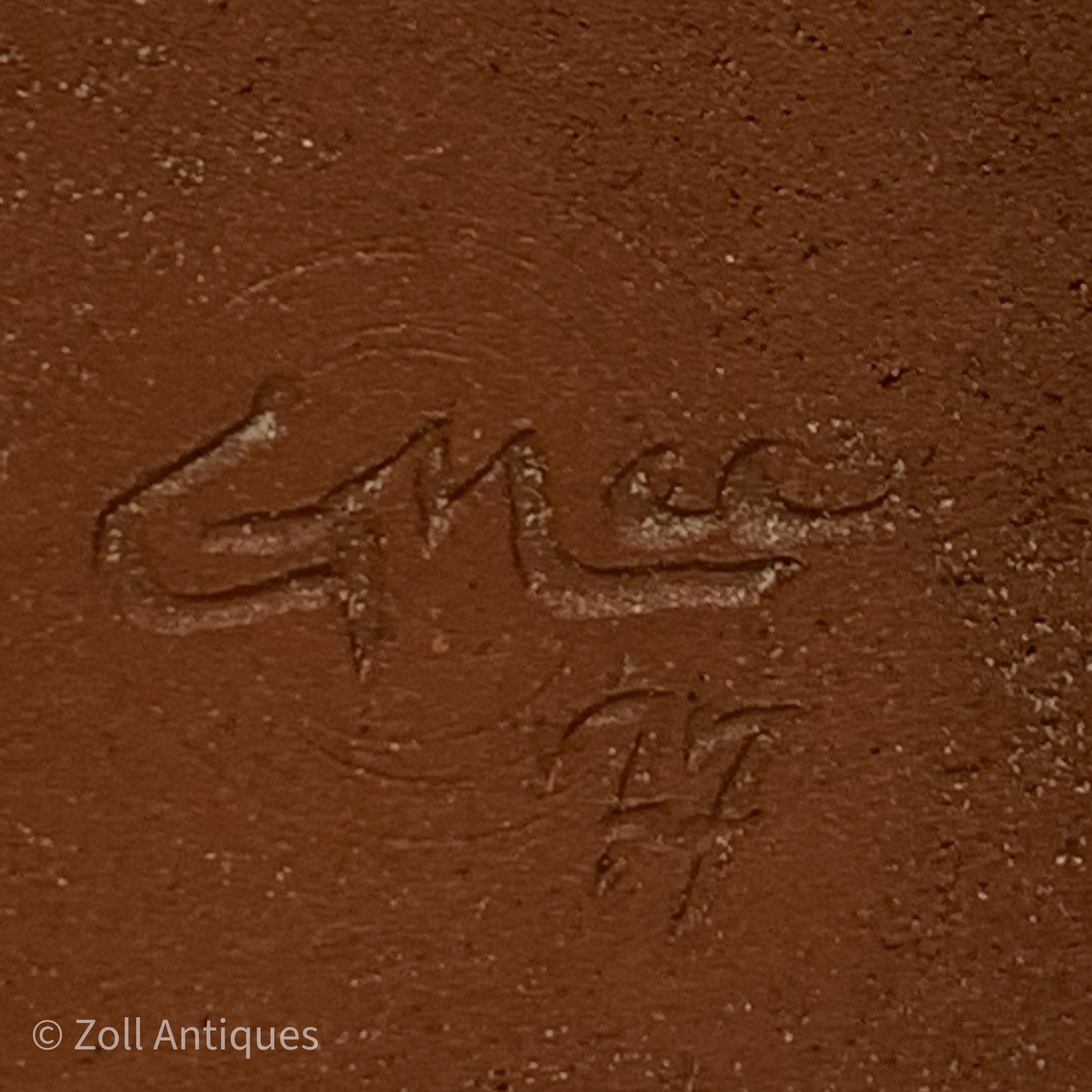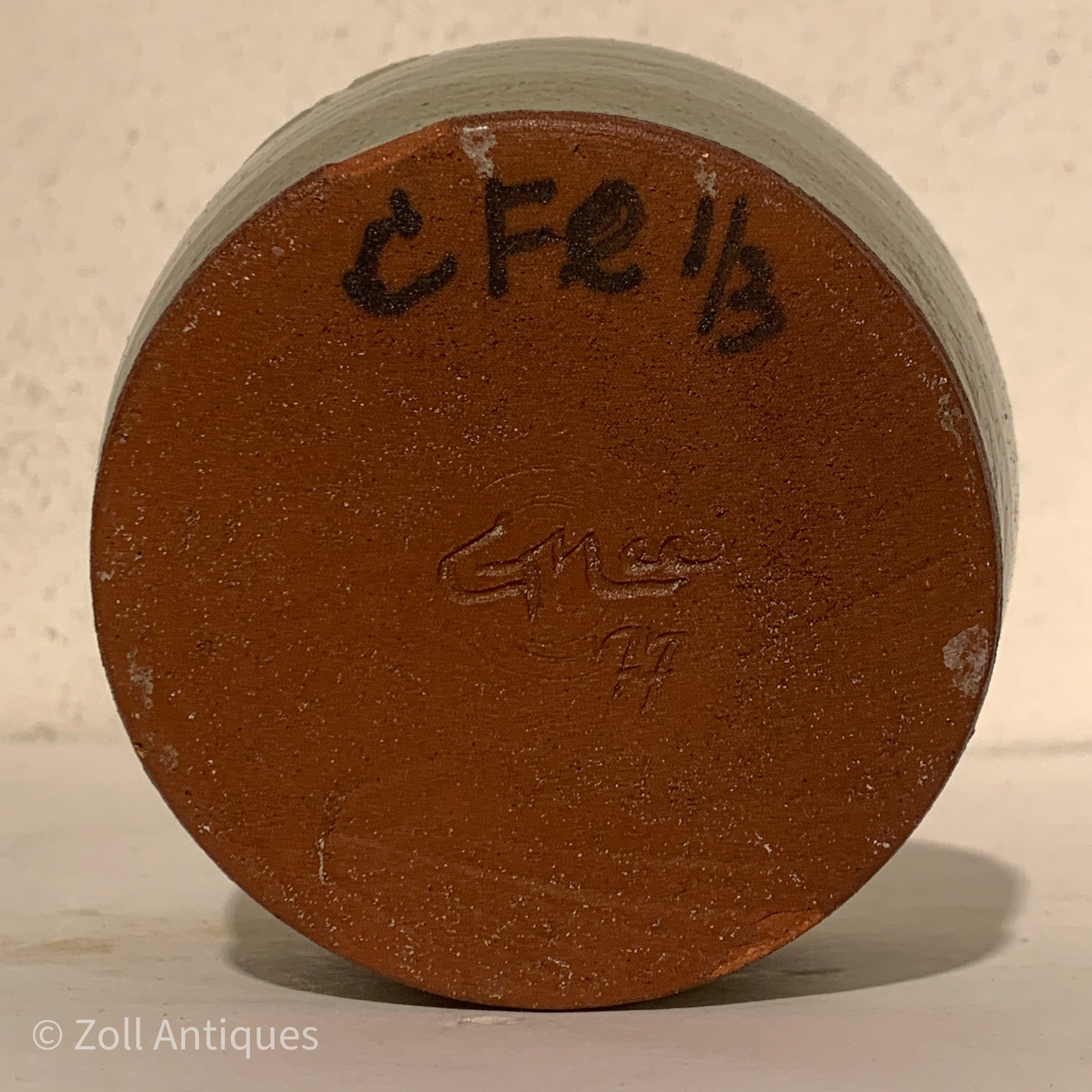 Gudrun Meedom Bæch(f.1911-2011) keramik krukke fra 1977. Signeret: G Mee 77. Skrift: CFE 1/3. Mål: 10x8,5 cm. Stand: mindre defekter, se billeder.
