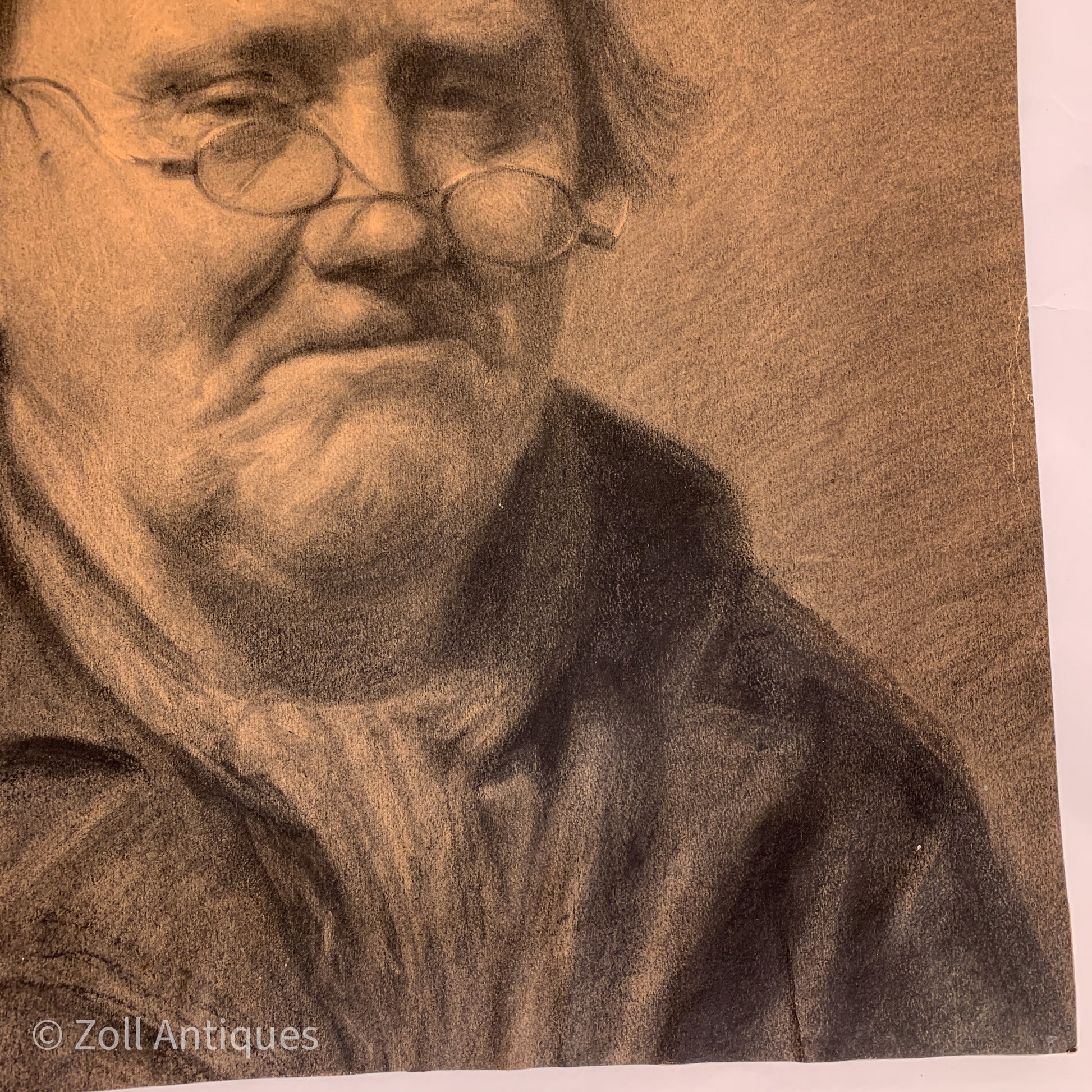 Henrik Schouboe (f.1876-1949) original portræt kultegning. Motiv af ældre mand. Signatur: HS. Kunstneren er uddannet på Kunstakademiet 1899-1901. Mål: 39,3x45,2 cm. Stand: se billeder.