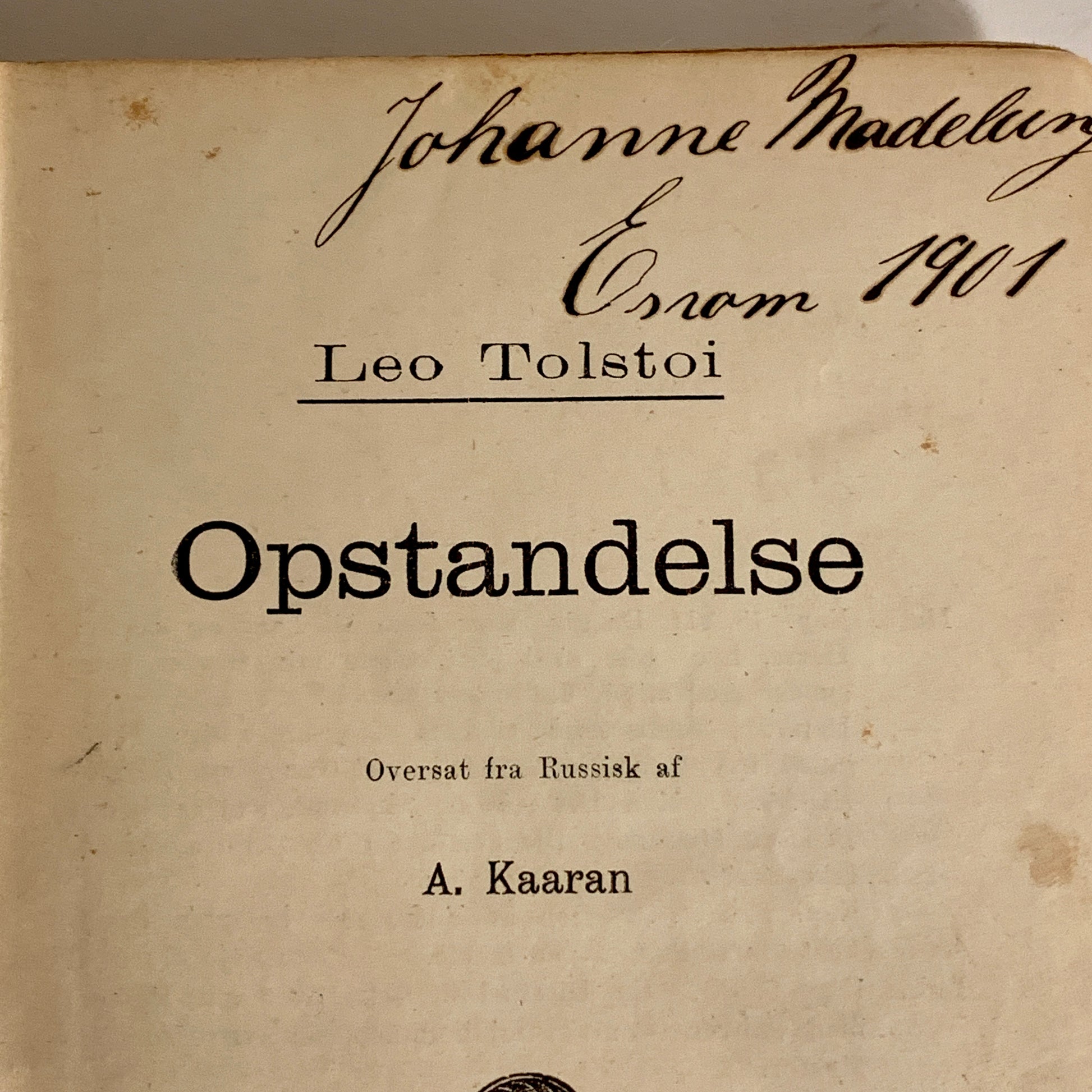Leo Tolstoy. Opstandelse. Antikvarisk norsk bog. Fra 1900.