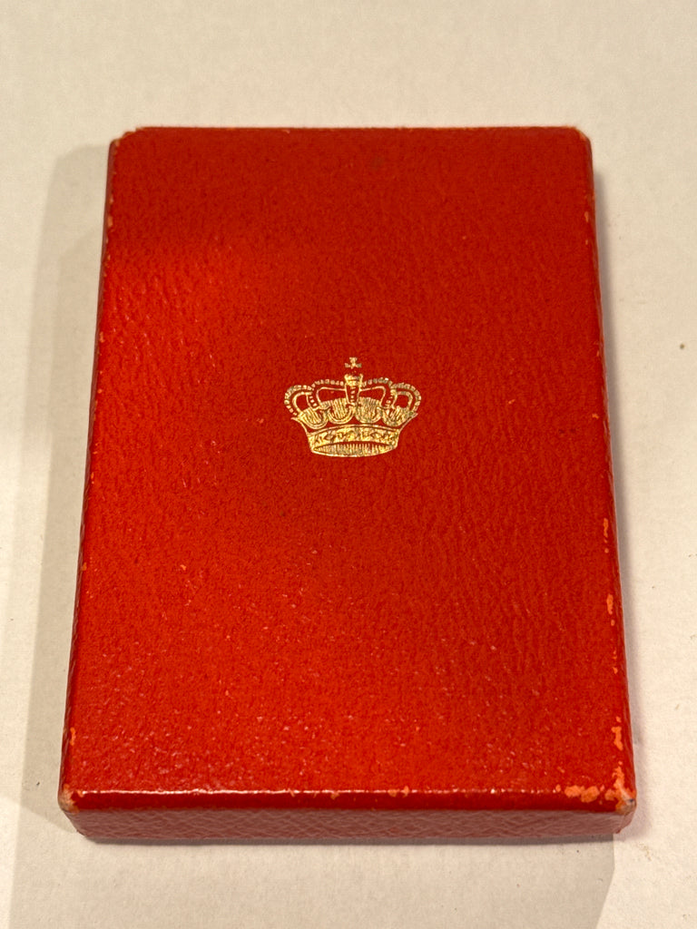 Miniaturemedaljebarre af danske Ridderkors - Chr. X version. Ridderkors af 1.Grad & almindeligt ridderkors. I æske. Mål: Ca. 4,5x3 cm. Stand: se billeder.