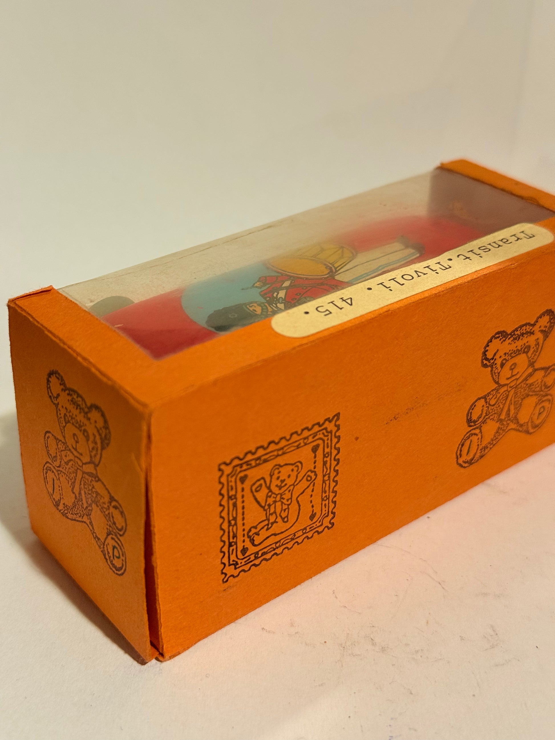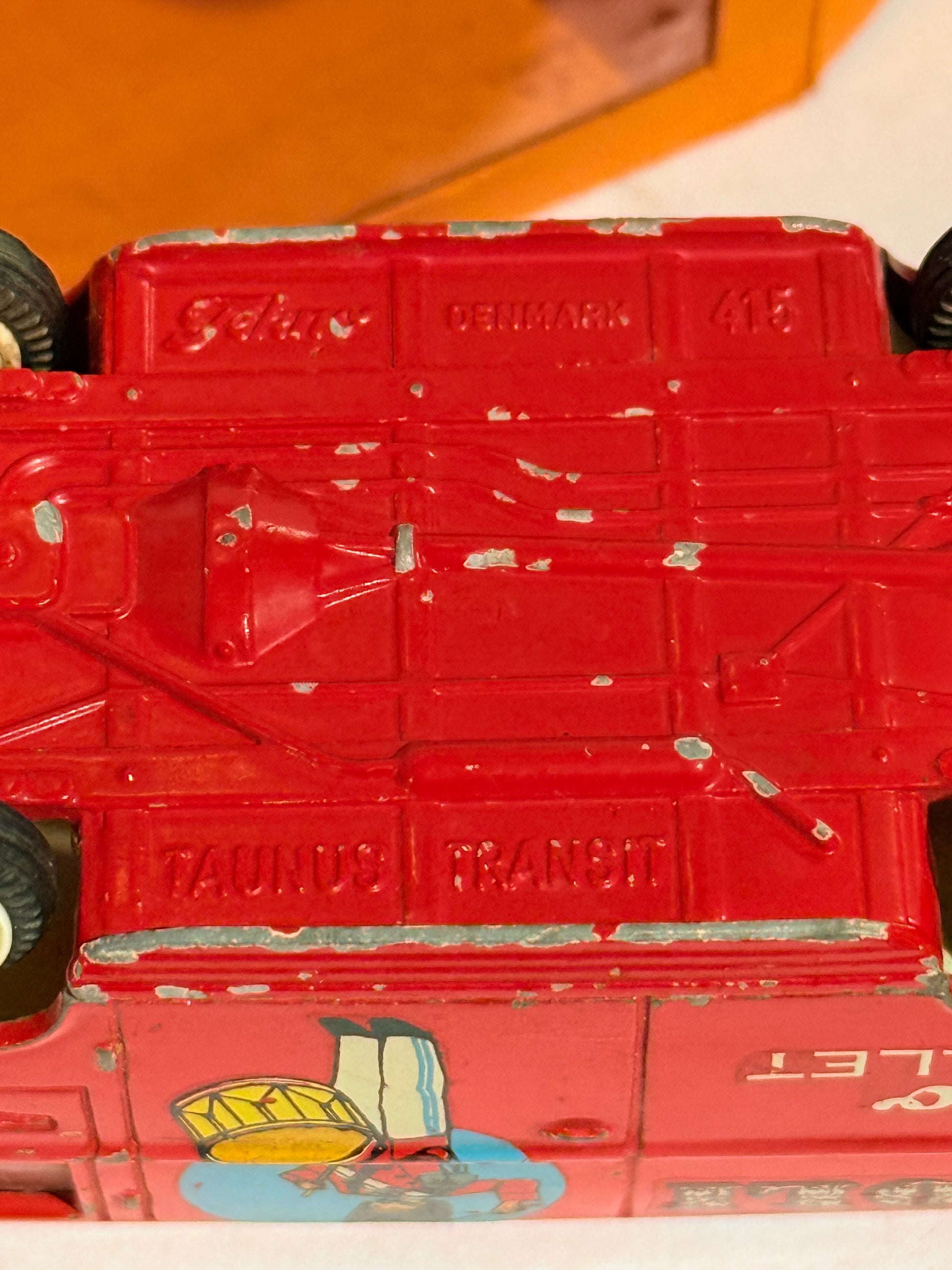 TEKNO Denmark Ford Taunus TIVOLI, Tekno spillet. No. 415. I original tivoli æske. Historie: Denne legetøjsbil kunne vindes i Tivolis Teknospil. Mål: Ca. 4,5x10x4 cm. Stand: se billeder.
