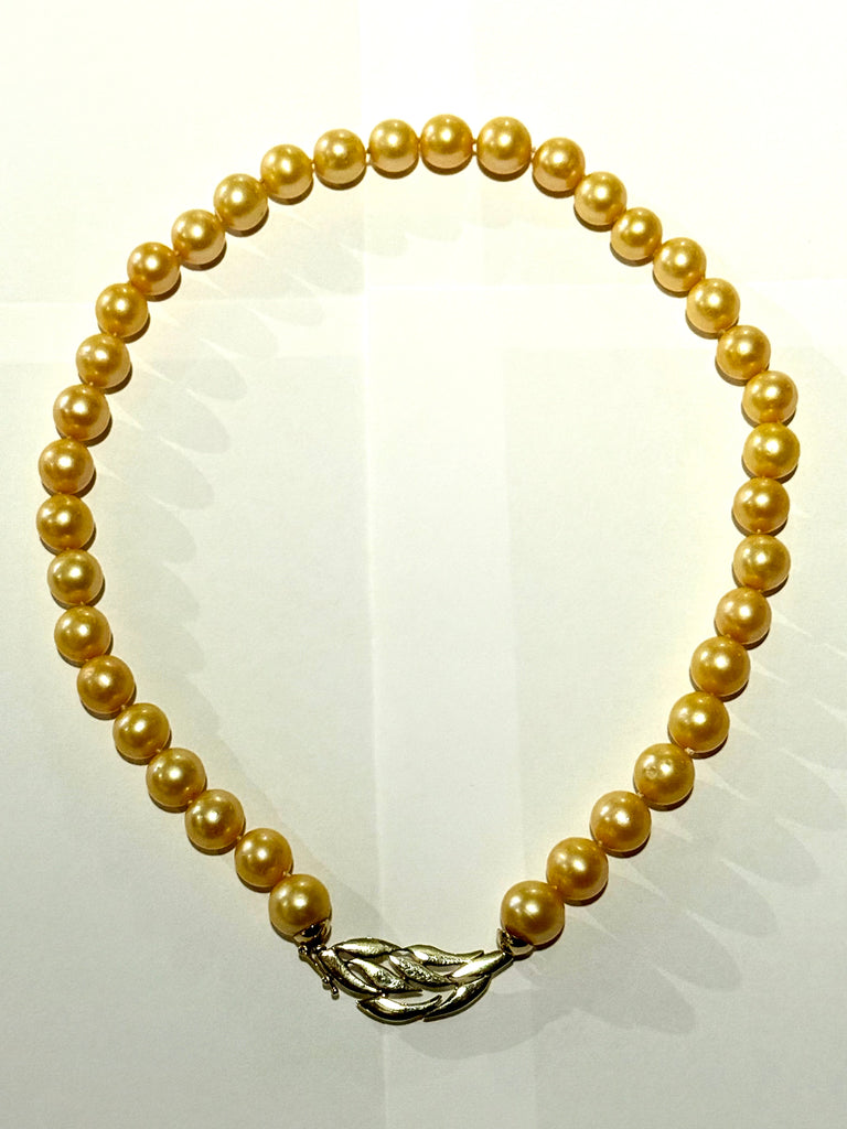 Vintage ægte Gylden perlehalskæde med stor guld lås. Fra midt/slut 1900 tallet.