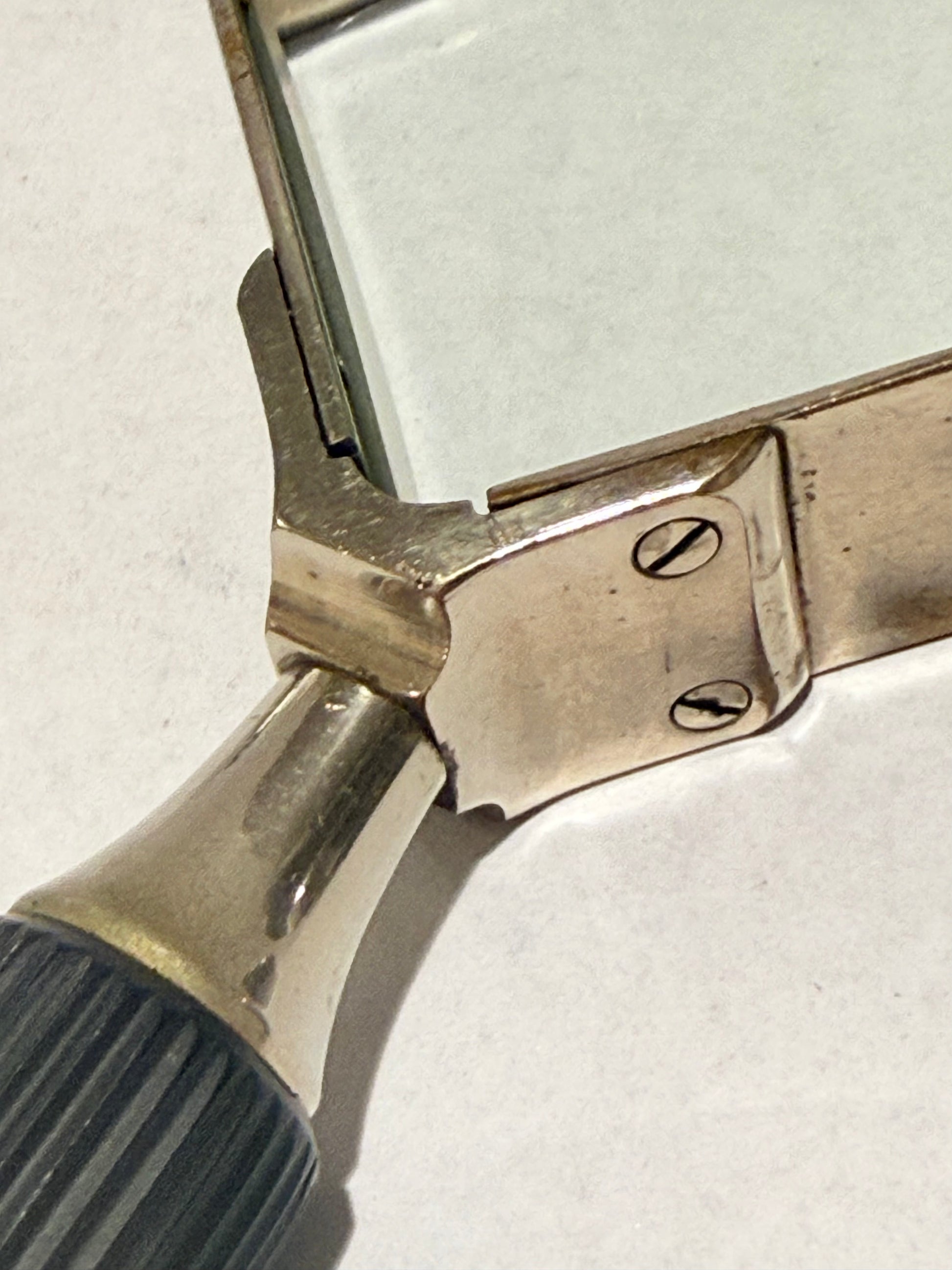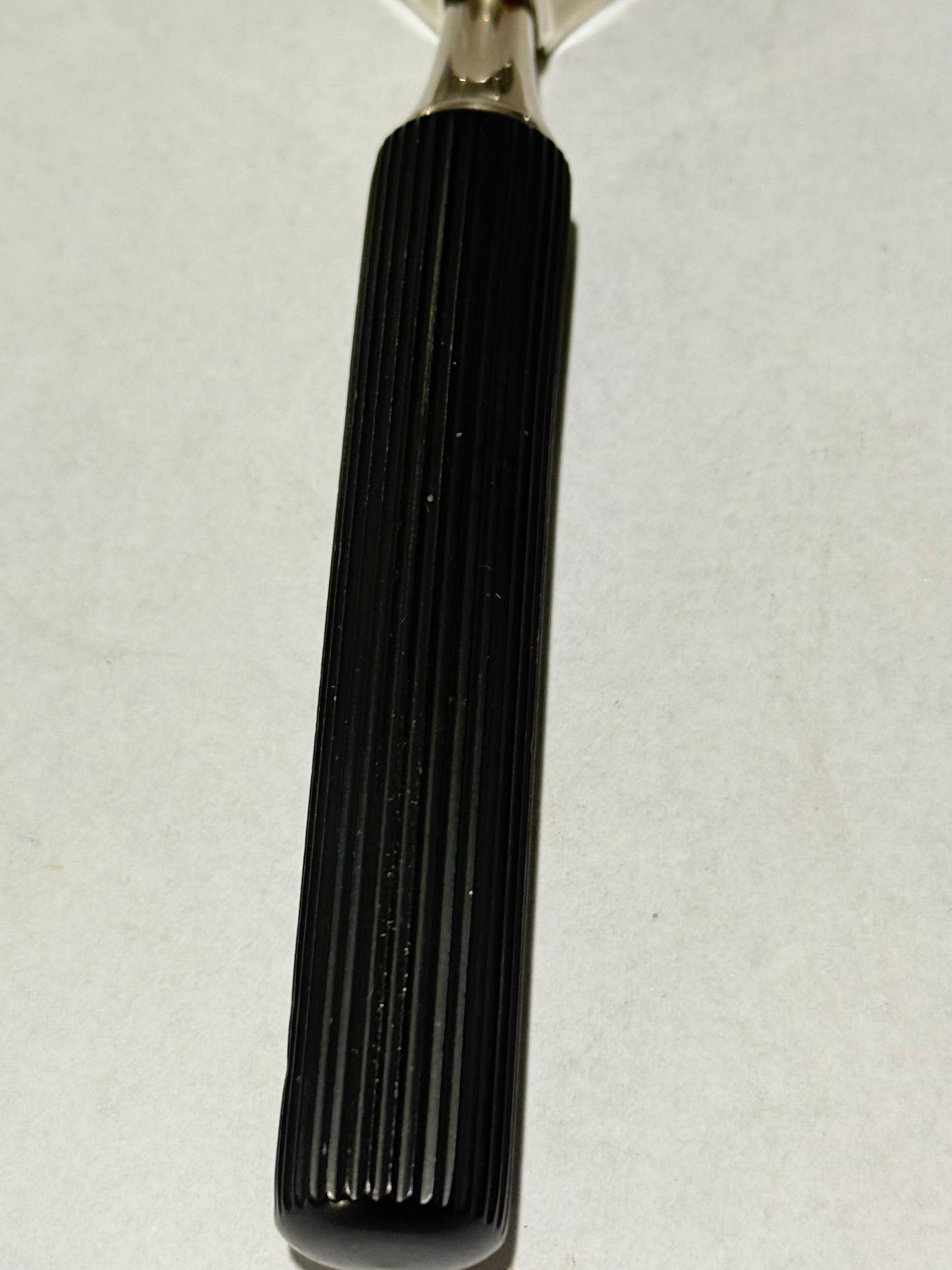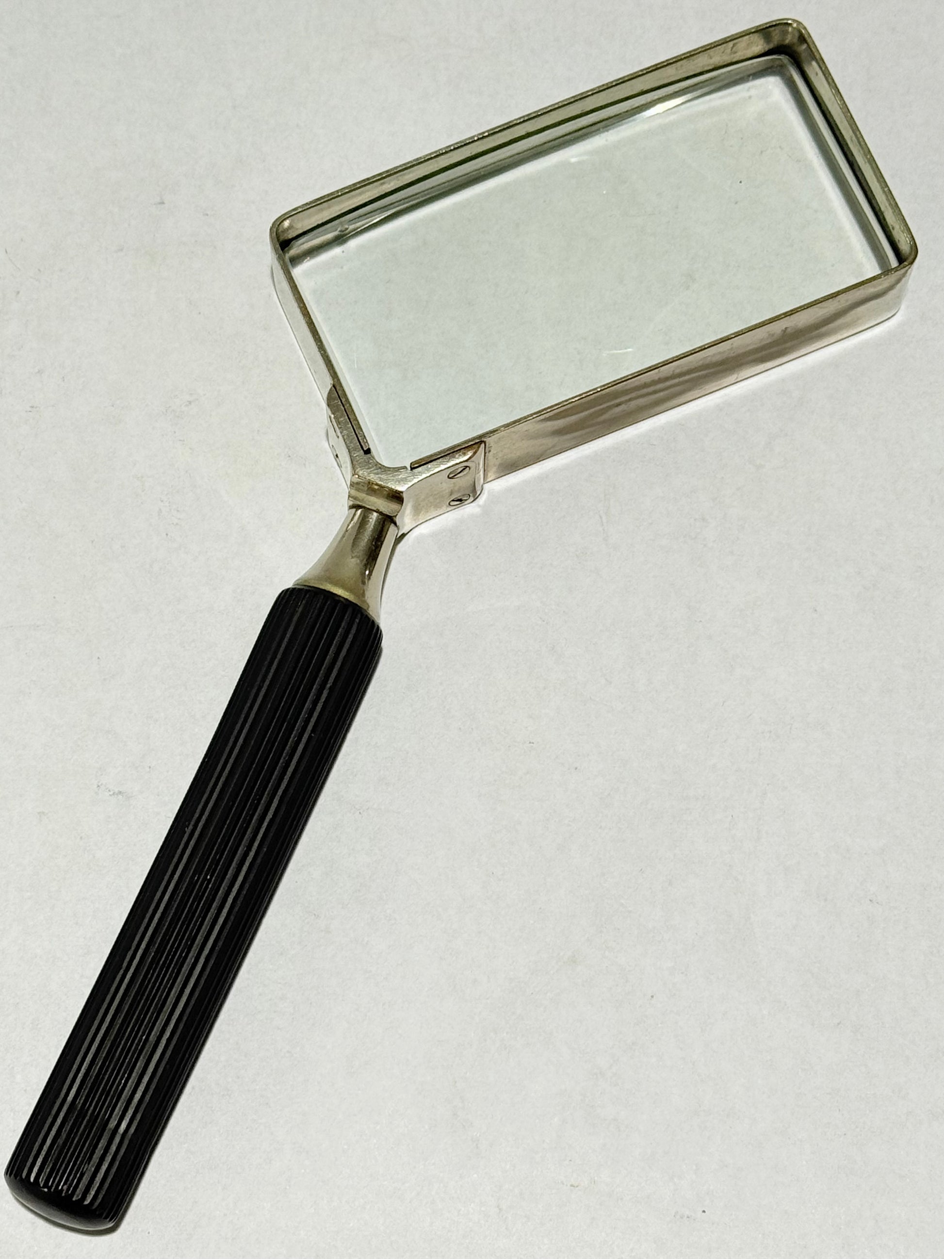 Vintage Forstørrelsesglas / lup. Fra midt 1900 tallet. Forkromet messingramme og sort håndtag. Mål: Ca. 19,5x8 cm. Stand: se billeder.