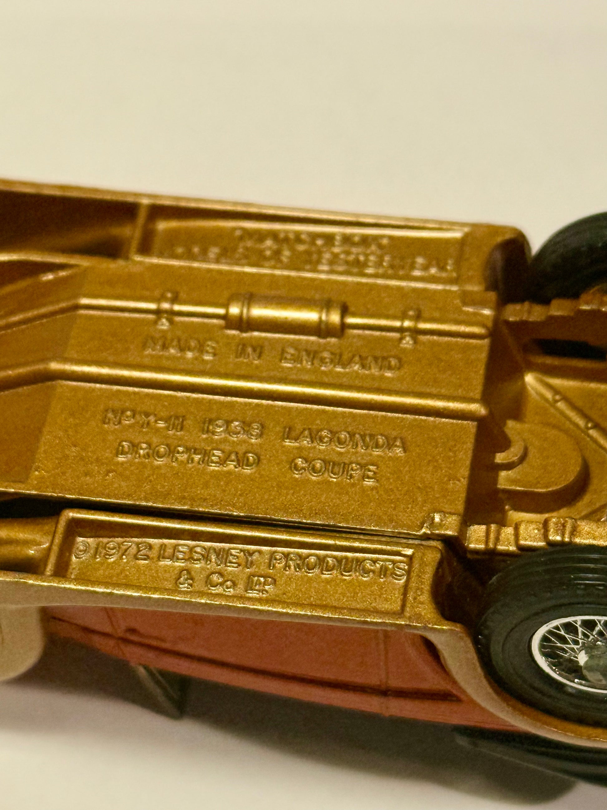 Vintage Lesney Matchbox 1928 Lagonda drophead metal bil, fra 1970érne.