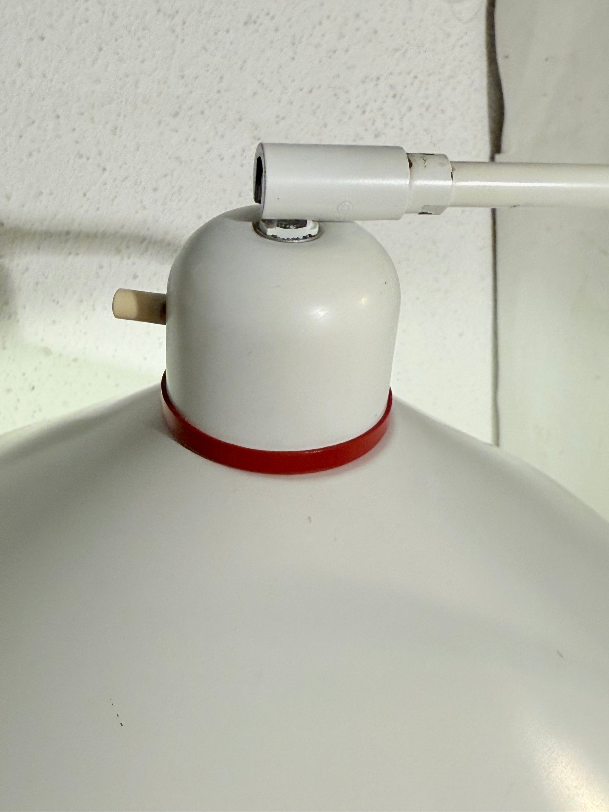 Vitrika bordlampe, fra 1960/70érne. Flot vintage dansk bord lampe i hvidlakeret metal. Mål ca.: 62 x 47 x 25 cm. Stand: se billeder.